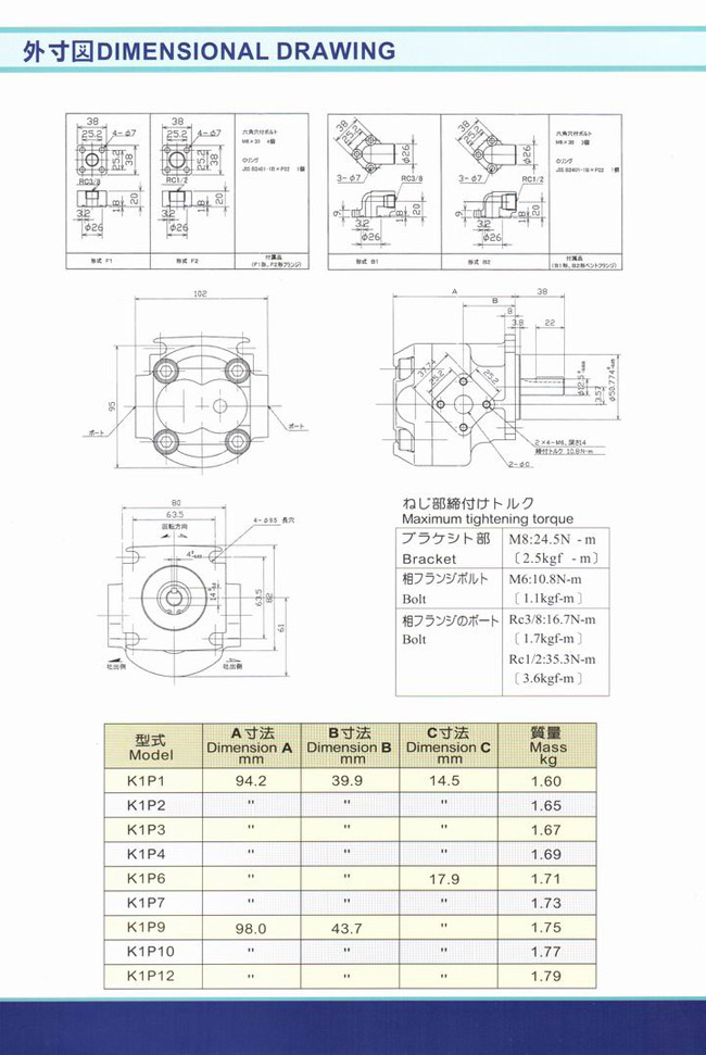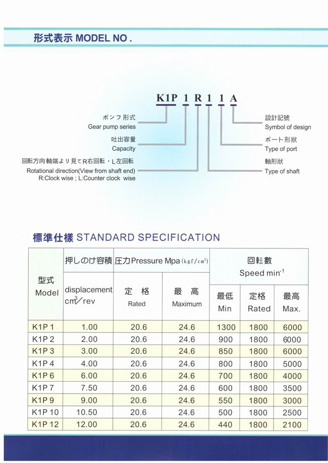 详情: 日本泵 日本NIHON SPEED齿轮泵 K1P系列